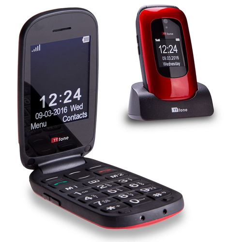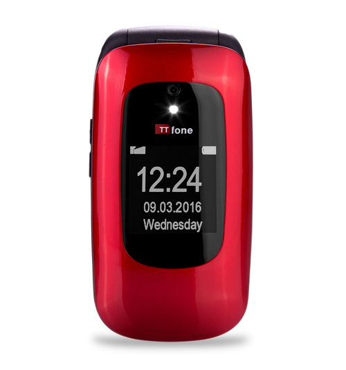 TTfone TT750 Red Lunar Flip Big Button Mobile Phone Bundle with Case