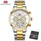 Business Top Royal Brand Quartz Man Watch with gold metal band and chronograph features, showcasing a luxurious design.