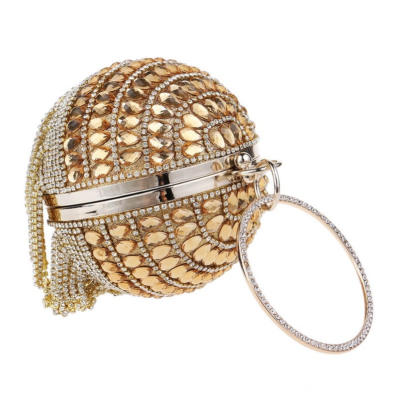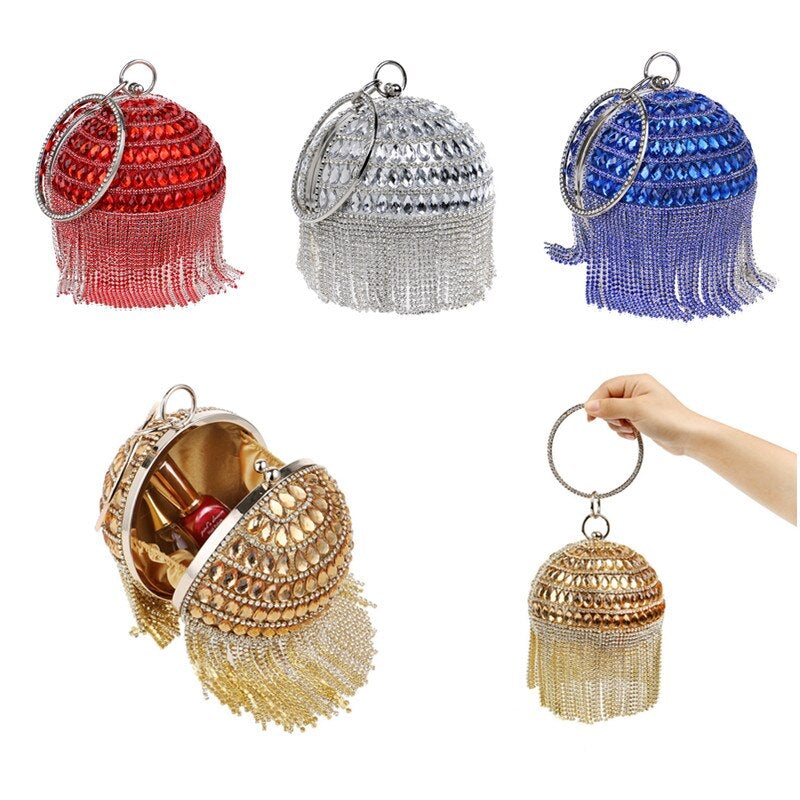 The circular shape of this clutch is unique and eye-catching, setting it apart from traditional evening bags. The addition of tassels and rhinestones adds a touch of glamour, ensuring you stand out at parties, weddings, or any formal event. The solid pattern enhances its versatility, allowing it to complement a variety of outfits.