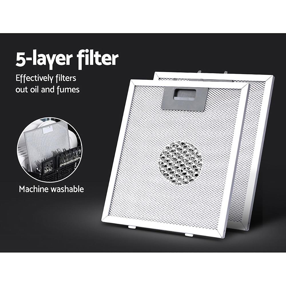 Maintaining a clean range hood is essential for its performance and longevity. The Devanti Range Hood is designed with two non-stick 5-layer aluminium filters that are both removable and replaceable. These filters effectively trap grease and particles, ensuring that your kitchen remains free from unwanted residues. Regular cleaning of the filters is a breeze, allowing you to keep your range hood in top condition.