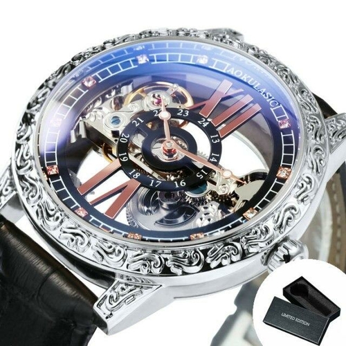 The Fashion Transparent Skeleton Luxury Watch for Men is a remarkable timepiece that combines elegance with functionality. This watch features a stunning skeleton design that showcases the intricate mechanical movement within, making it a perfect accessory for any stylish man. Crafted with a luxurious carved case and a golden bridge crystal dial, this watch is not just a timekeeper but a statement piece that reflects sophistication and class.