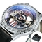 Fashion Transparent Skeleton Luxury Watch for Men with mechanical movement, leather strap, and golden bridge crystal dial.