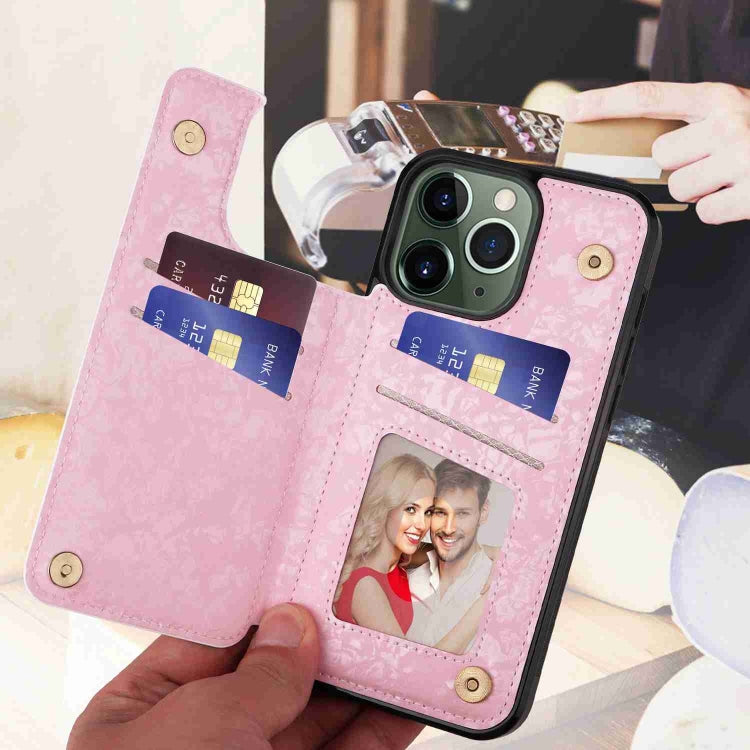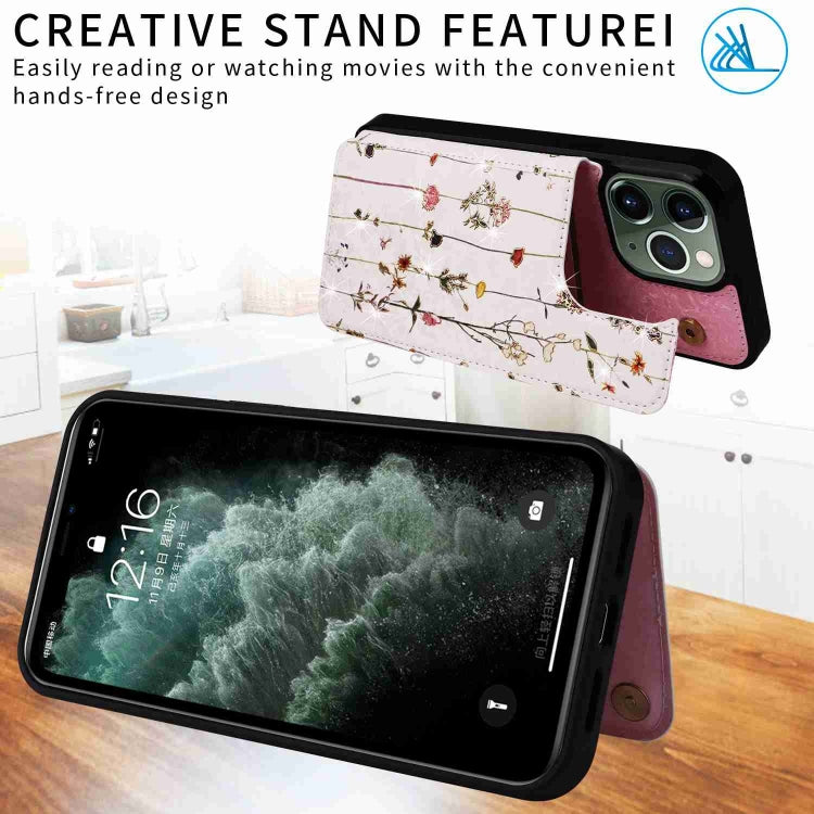For iPhone 11 Pro Max Printed Double Buckle RFID Anti-theft Phone Case showcasing its stylish design and card storage features.