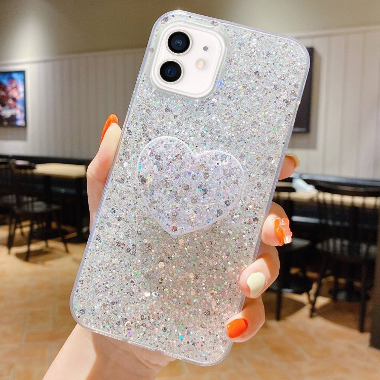 Starry Sequin Heart Stand Epoxy TPU Phone Case for iPhone 12 mini, showcasing its stylish design and protective features.
