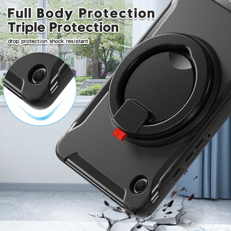 Shockproof TPU + PC protective case for Samsung Galaxy Tab A9, showcasing its durable design and holder feature.
