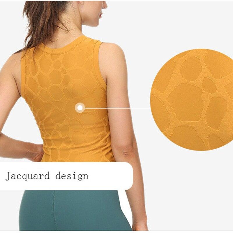 Choosing the Giraffe Jacquard Padded Gym Sport Tank Tops means investing in quality and style. The combination of fashionable design and functional features makes these tank tops a must-have for any active woman. With their unique pattern and supportive padding, they stand out from ordinary workout tops, allowing you to express your personal style while staying fit.