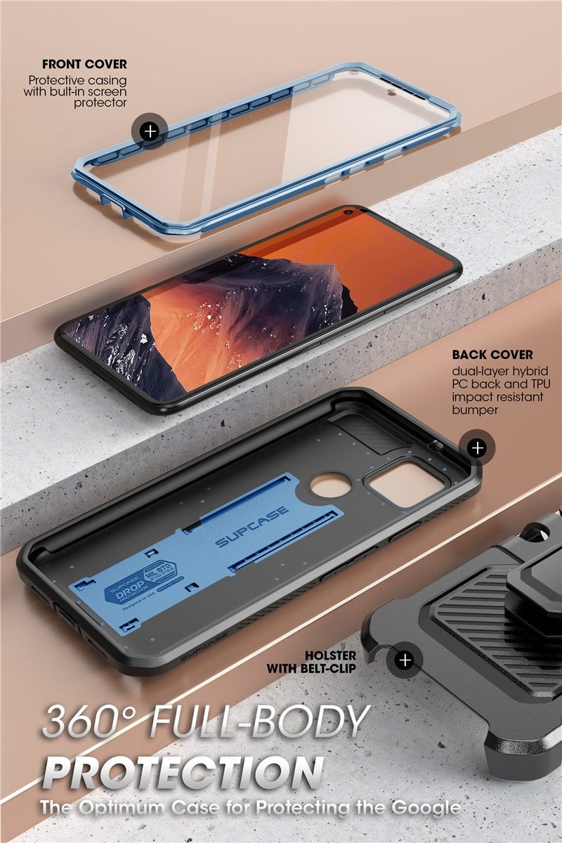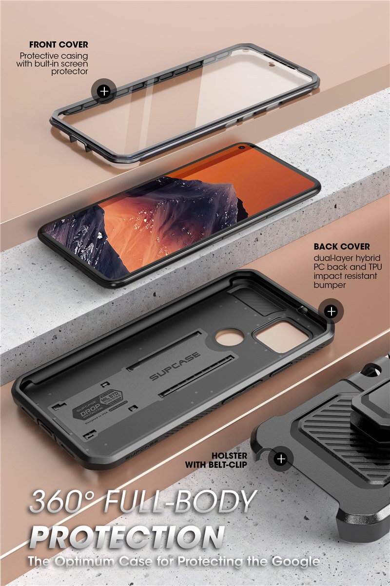The Google Pixel 5 Case (2020) UB Pro Full-Body Rugged Holster Case is designed to provide maximum protection for your device. With its robust construction and built-in screen protector, this case ensures that your Google Pixel 5 remains safe from drops, scratches, and everyday wear and tear. Whether you're an outdoor enthusiast or simply want to keep your phone in pristine condition, this case is the perfect solution.