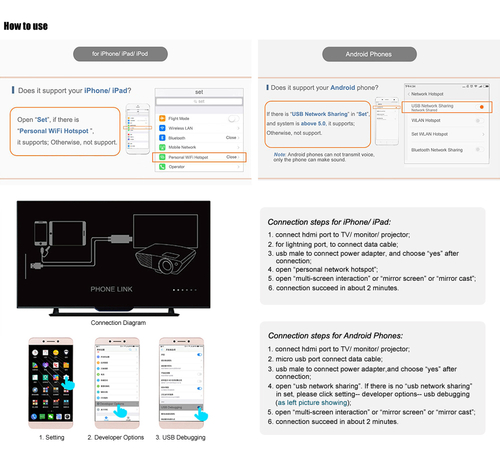 2. for android phones, the cable can only transmit video, not audio, the voice must be from the mobile phone.
