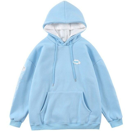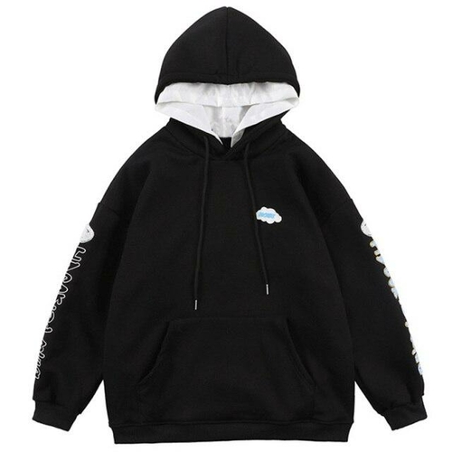 The hoodie features a unique angel embroidery design that adds a touch of personality to your outfit. Its abstract pattern makes it stand out while still being versatile enough to match with various outfits. Available in two classic colors, blue and black, you can easily coordinate these hoodies with your favorite jeans or joggers for a complete look.