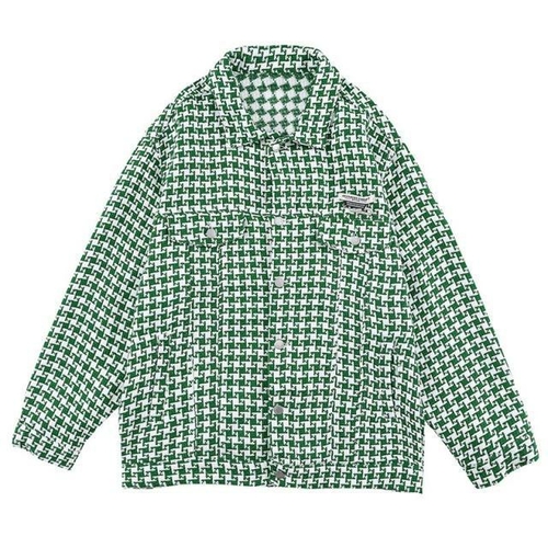 The classic plaid pattern adds a touch of vintage charm to your outfit, while the turn-down collar enhances the overall aesthetic. This jacket is designed for a loose, baggy fit, allowing for easy layering over your favorite sweaters or hoodies. Whether you're heading out for a casual day or a night out, this jacket will elevate your look.