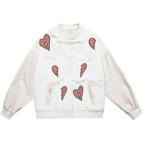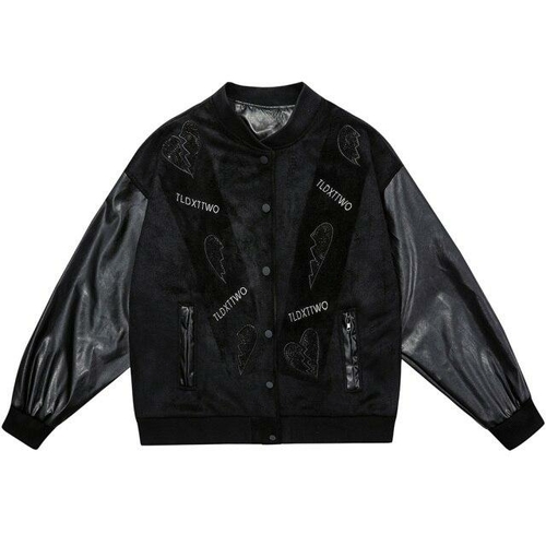 In summary, the Men's Diamonds Broken Heart Leather Patchwork Sleeve Baseball Jacket is a versatile and stylish addition to any wardrobe. With its unique design, comfortable fit, and durable materials, it is perfect for those who want to stand out while enjoying the comfort of casual wear. Don't miss out on this fashionable piece that combines art and style seamlessly.