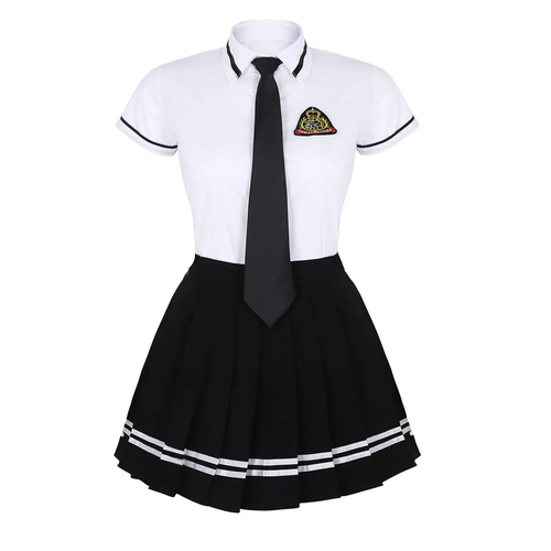 Introducing the Japanese School Girl Uniform Suit, a delightful outfit that captures the essence of classic Japanese school attire. This uniform is perfect for various occasions, including cosplay events, themed parties, or even as a fun everyday outfit for school. The set includes a stylish white short sleeve T-shirt top, a matching pleated skirt, a decorative tie, and a badge, making it a complete ensemble for any young girl or woman looking to embrace this iconic style.