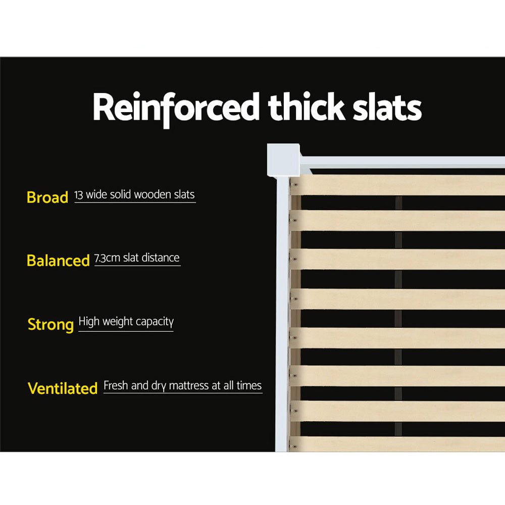 King Single Wooden Bed Frame - White