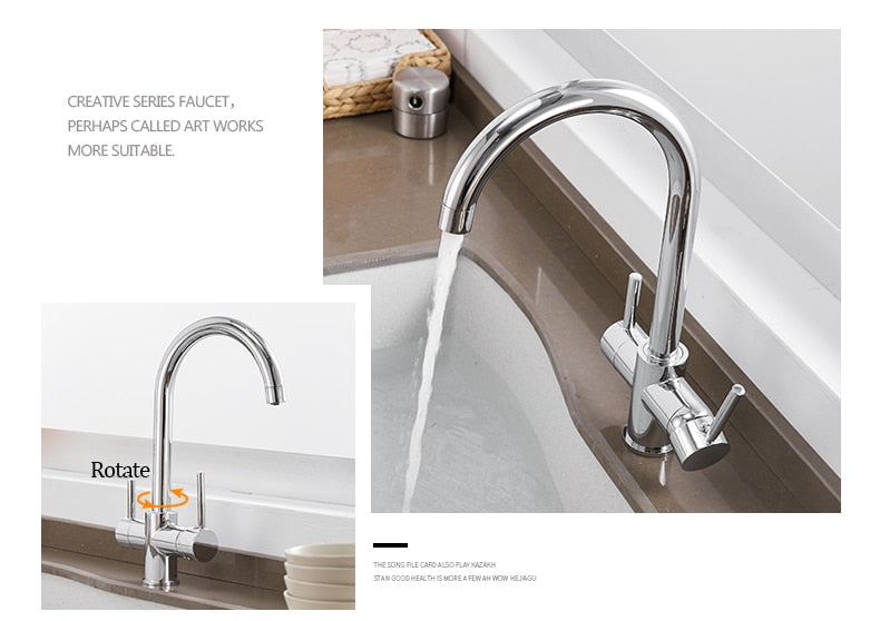 This faucet is designed to handle both cold and hot water, making it versatile for various kitchen tasks. Whether you are washing dishes, preparing food, or filling up a glass of water, the Kitchen Faucets Waterfilter Taps provide the convenience you need. The rotatable feature allows you to adjust the faucet's position, giving you flexibility in your kitchen workspace.