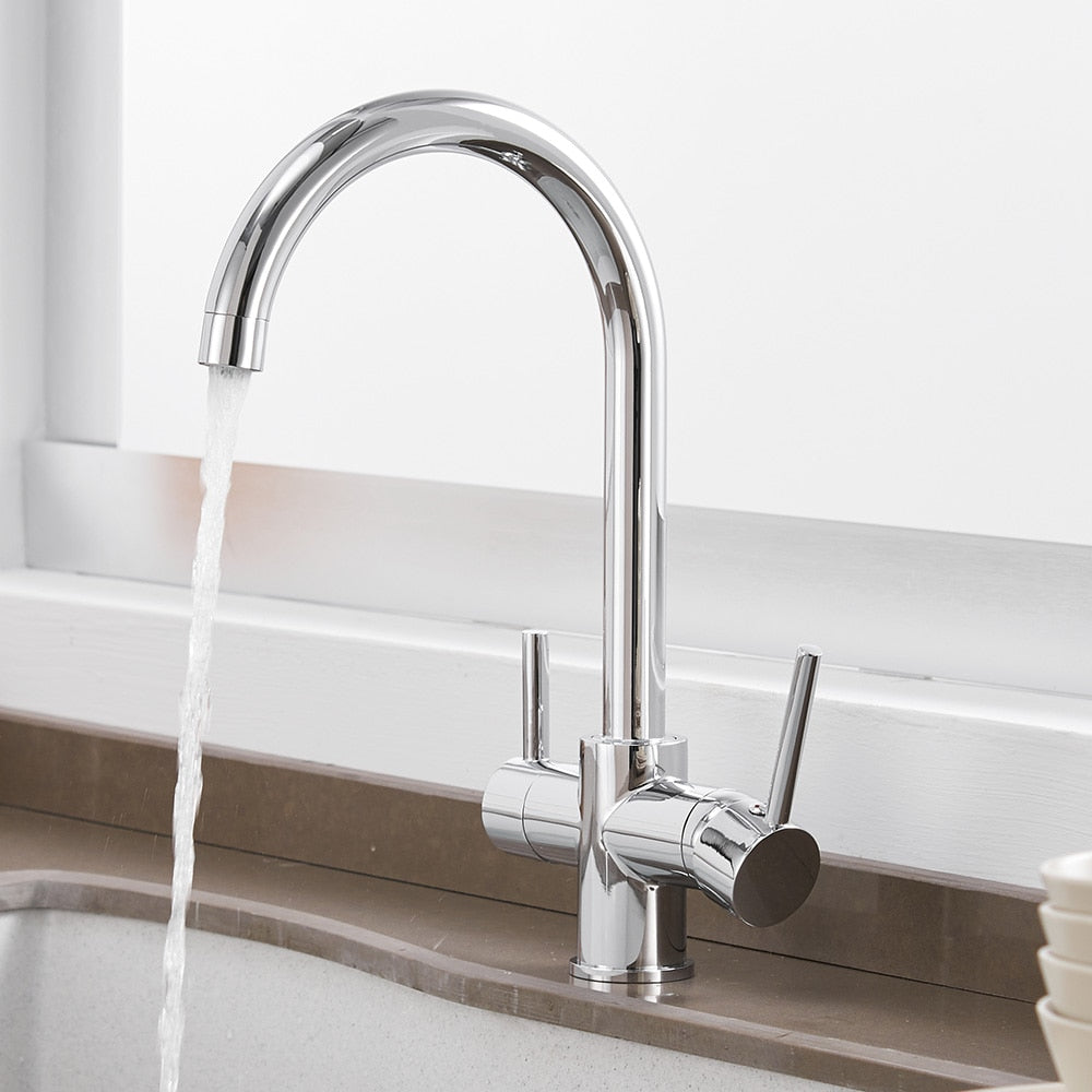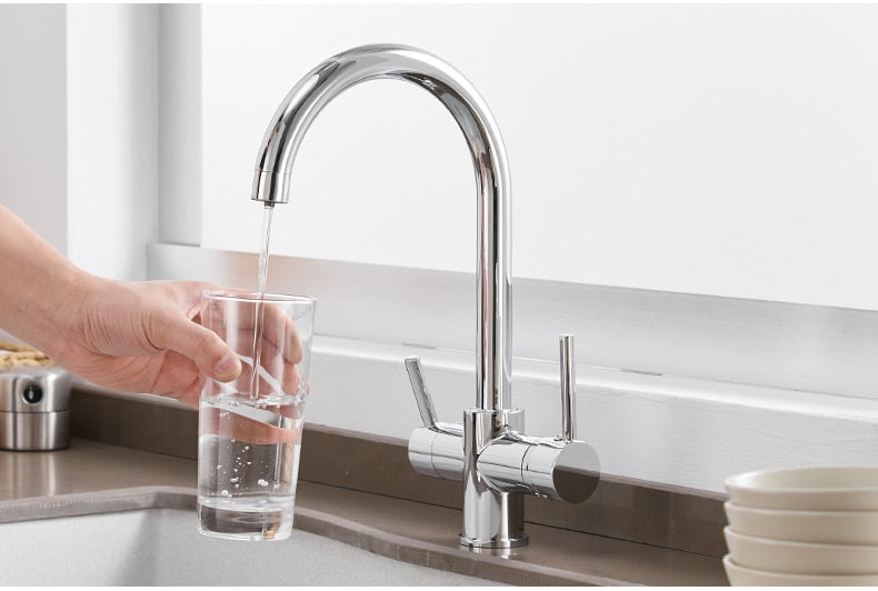 The Kitchen Faucets Waterfilter Taps come equipped with a dual handle system, allowing you to easily control the temperature of the water. Whether you need hot water for cooking or cold water for drinking, this faucet has you covered. The ceramic valve core ensures long-lasting performance, making it a reliable choice for your kitchen.