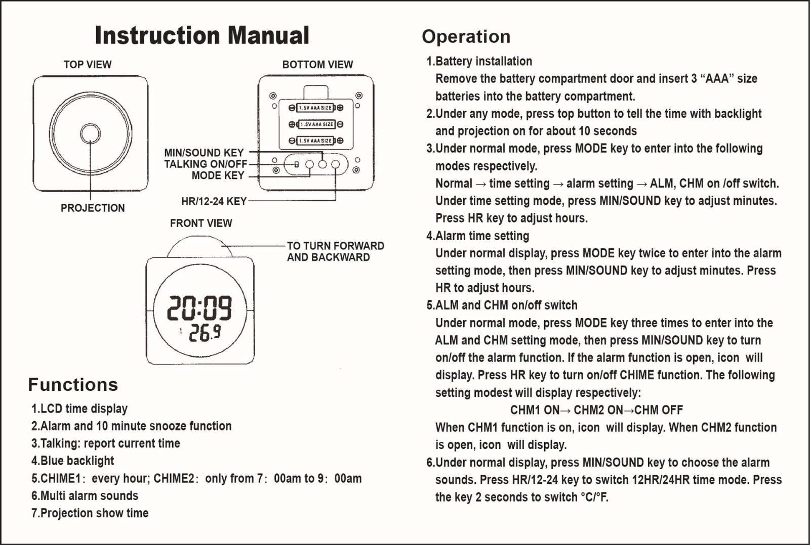 The LED Projection Alarm Clock is a multifunctional device that combines modern technology with practical features to enhance your daily routine. With its digital LCD display, this clock not only tells time but also projects it onto your wall or ceiling, making it easy to see from anywhere in the room. The integrated projector swivels 90 degrees, allowing you to adjust the angle for optimal viewing. The projected time is sharp and clear, ensuring you can read it easily without any focus adjustments.