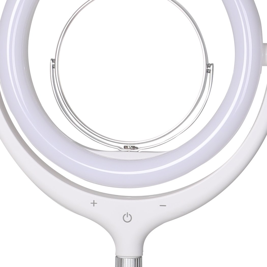 The LED Ring Light features premium quality LED lights with a total illumination of 1200LM, powered by 96 LED bulbs. It operates at a rated power of 10W, ensuring energy efficiency while providing bright, clear lighting. The dimming range of 1% to 100% allows for complete control over the light intensity, making it suitable for any situation.