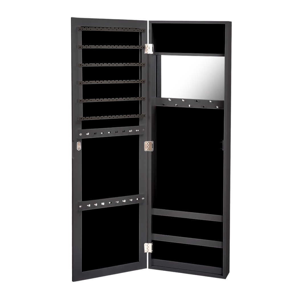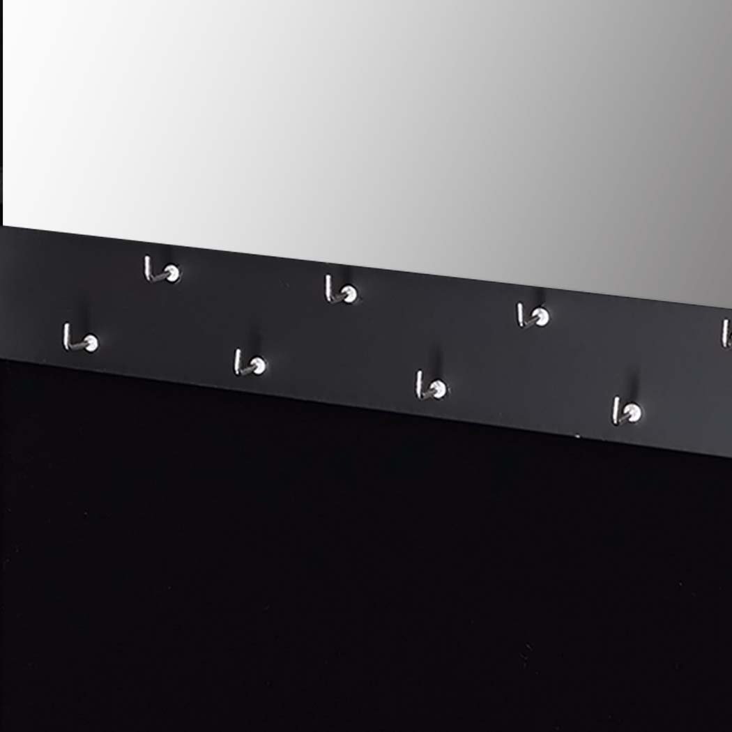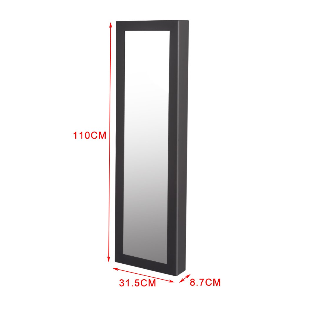 Constructed from high-quality painted MDF, the Levede Mirror Jewellery Cabinet is built to last. The sleek black finish adds a touch of elegance, making it a stylish addition to any decor. The glass mirror on the front provides a convenient way to check your appearance while getting ready, and the additional mirror inside the door offers extra functionality.