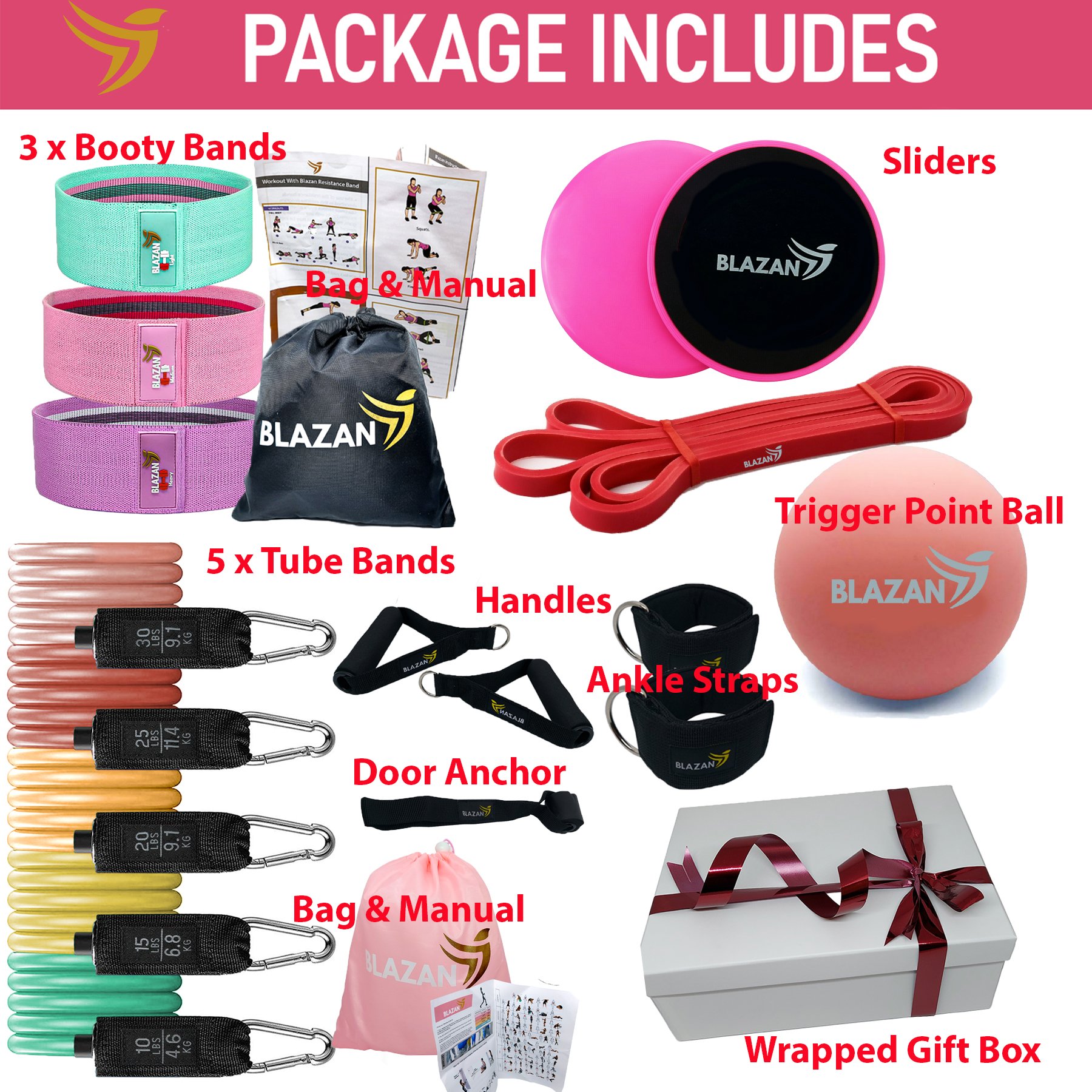 When you purchase the Luxe Fitness Set Box, you receive a comprehensive collection of fitness accessories, including: