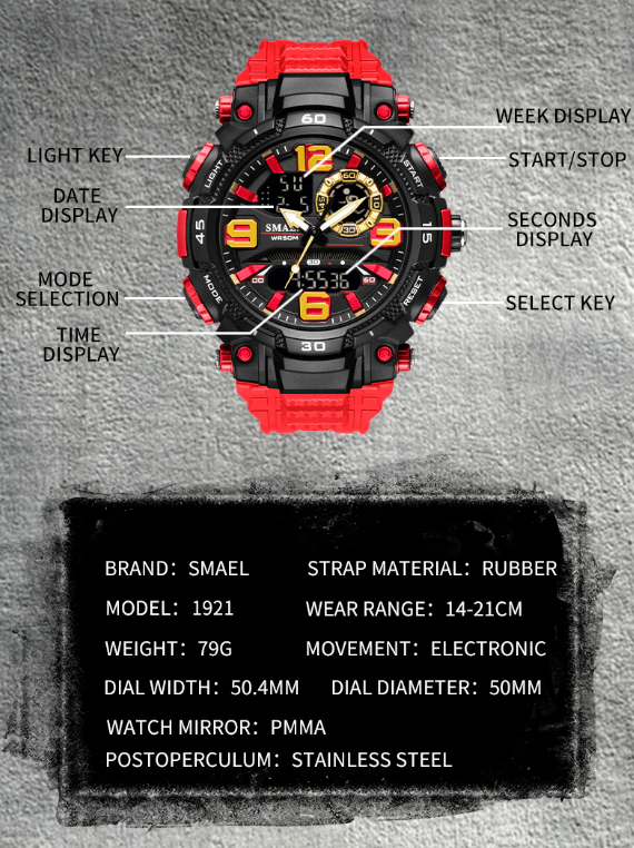 Equipped with a Japan imported original digital sport movement, this watch ensures precise timekeeping. The battery life is impressive, lasting up to two years under normal usage. The watch features both digital and analog displays, allowing you to choose your preferred viewing style. This dual display is not only practical but also adds to the watch's aesthetic appeal.