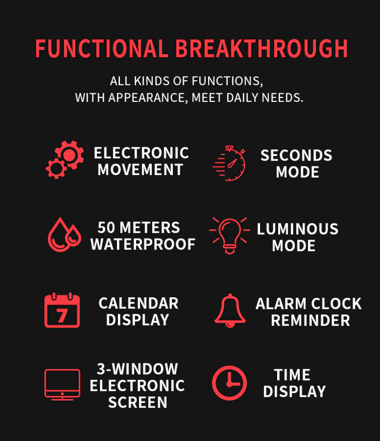 This watch is not just about telling time; it is packed with features that enhance its functionality. The Military Men Watch includes a calendar for day and date, an alarm function, and a stopwatch. These features make it a versatile tool for both sports and daily life. Whether you're timing your runs or setting reminders, this watch has you covered.
