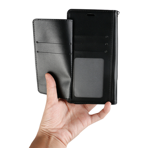 Include credit card wallet slot to hold business cards, ID card, bank cards, transportation card and cash. Comes with hand strap.