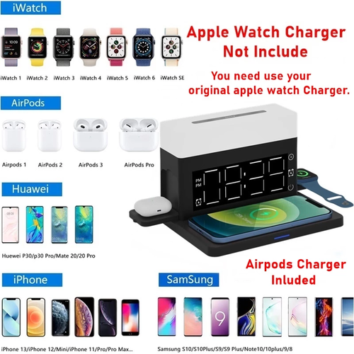 6in1 Multi Wireless Charger For Iphone 13 12 11 XS Pro Max RGB Night Light Alarm Clock Charging Staion For Apple Watch Airpods