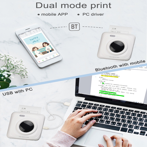 Dual Mode Print: The portable pocket printer supports wireless bluetooth 4.0 print with mobile APP and PC driver print with usb cable.
