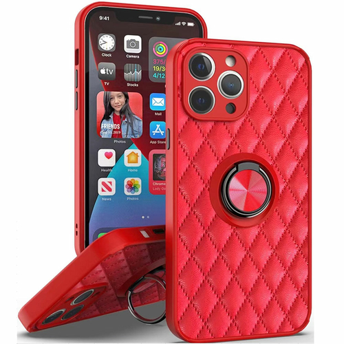 Dropship Quilted PU Leather Shockproof Ring Stand Case for iPhone 13 Pro Max