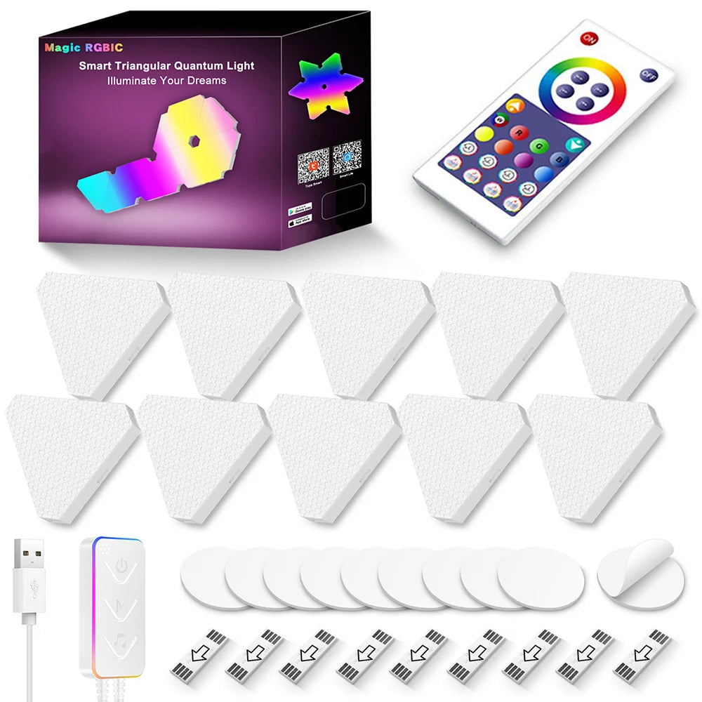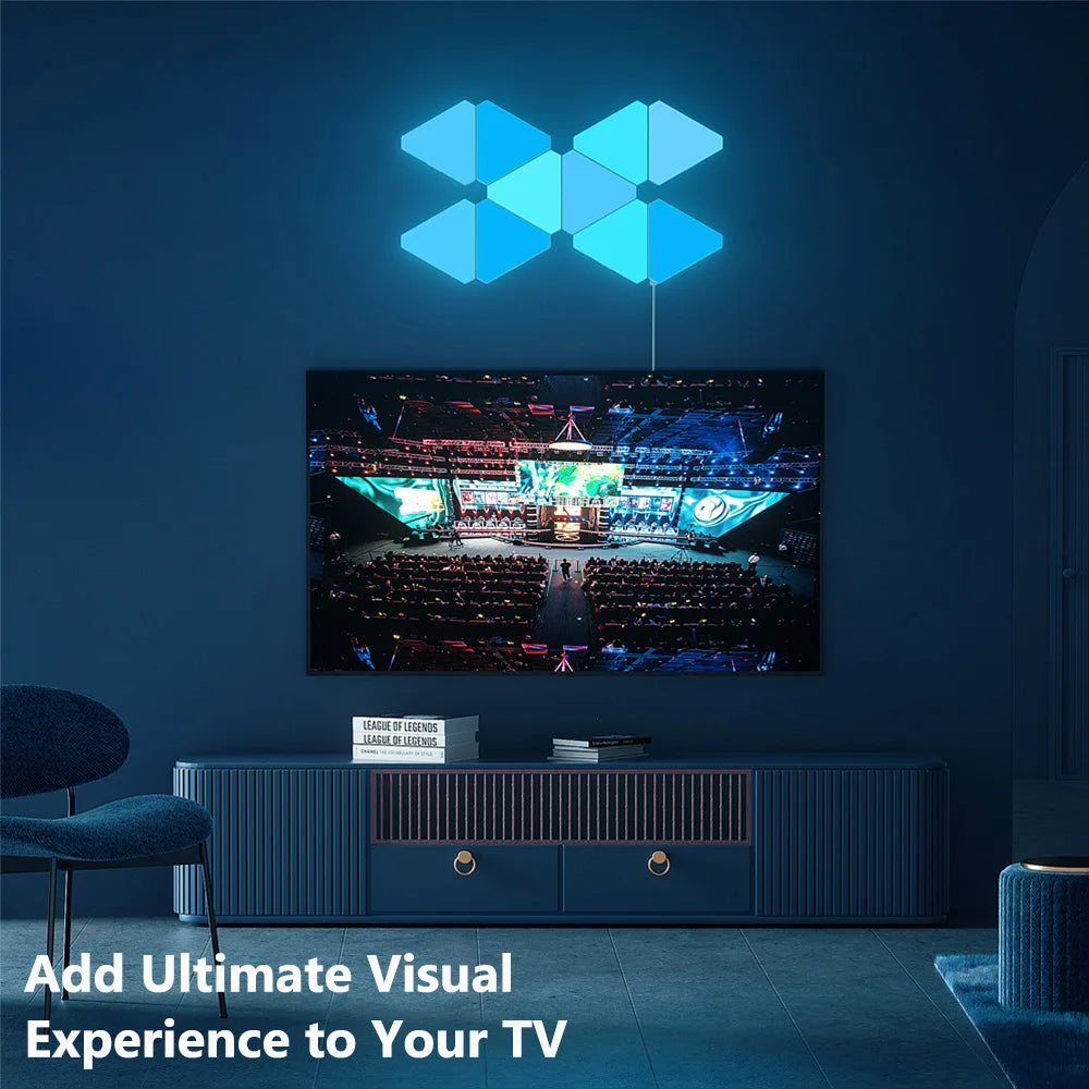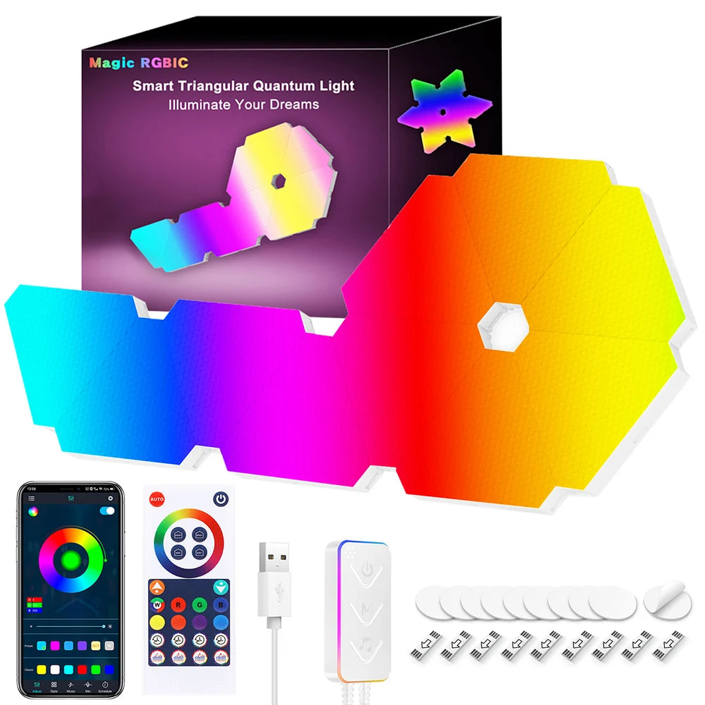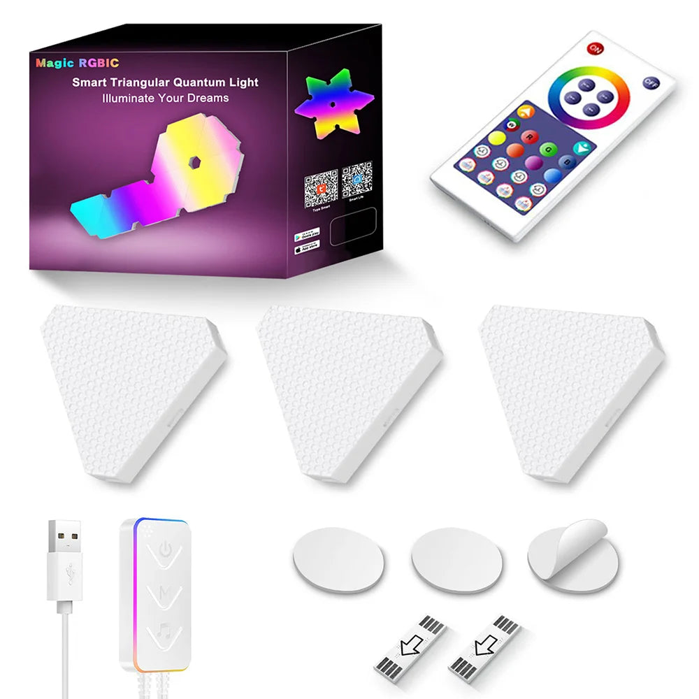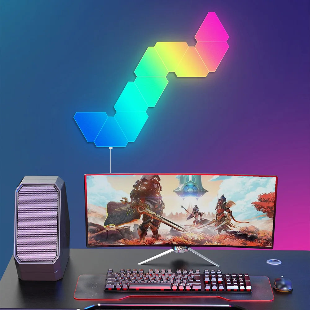 Enhance your living space with the innovative Remote LED Honeycomb Smart Modular Triangle Wall Sconces. These smart LED triangle lights are designed to bring a unique ambiance to any room, making them perfect for home decor or gaming setups. With their ability to sync with music and customizable color options, these wall sconces are not just lights; they are a statement piece for your home.