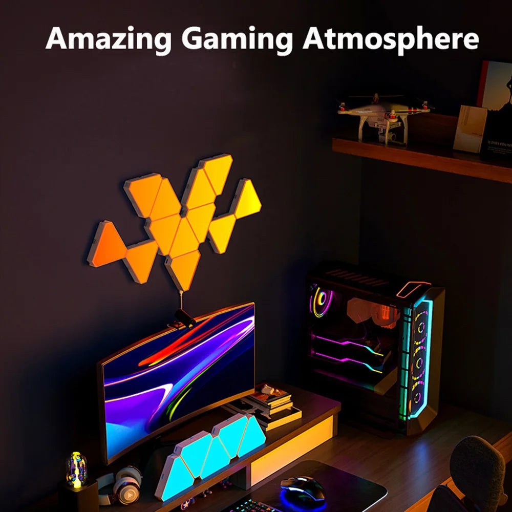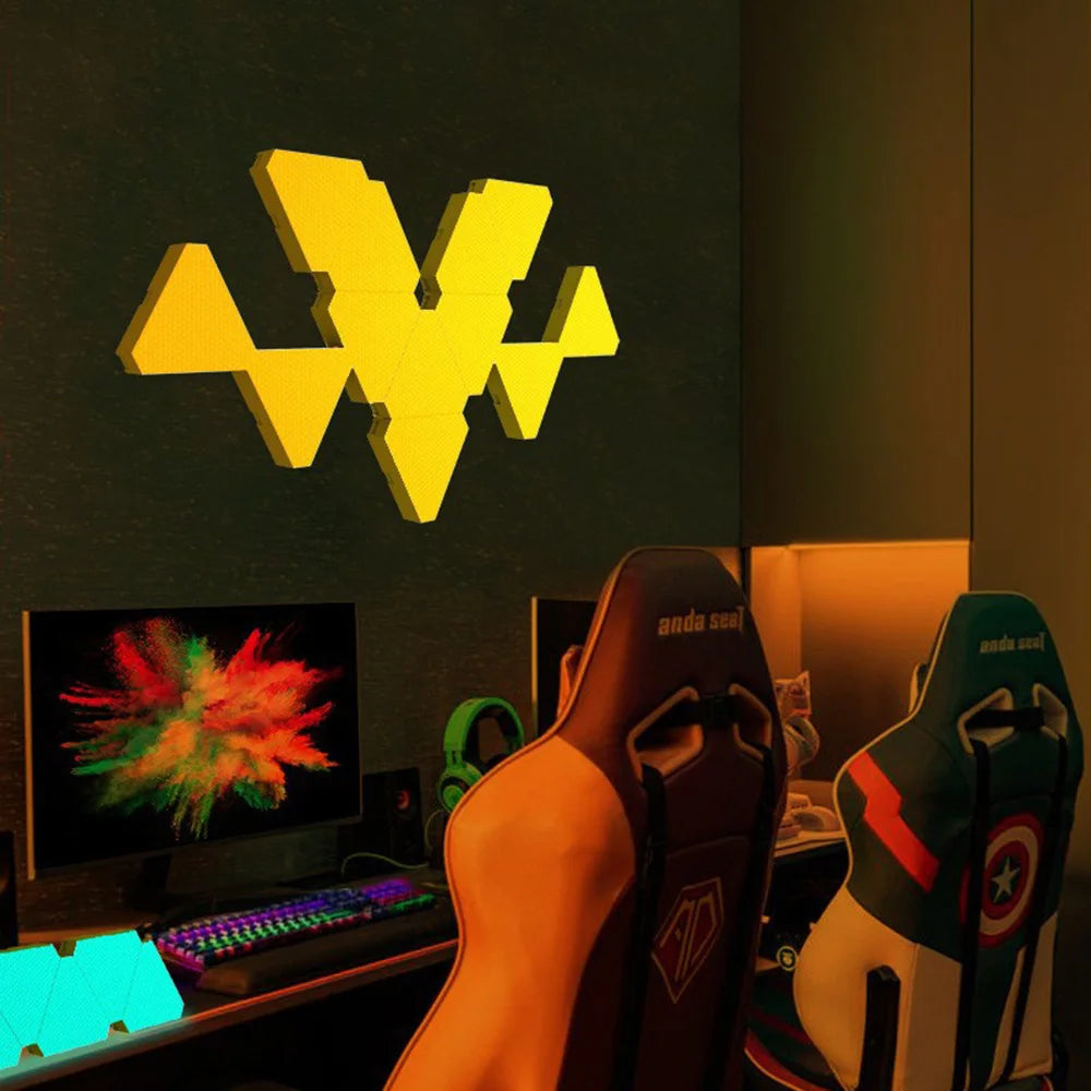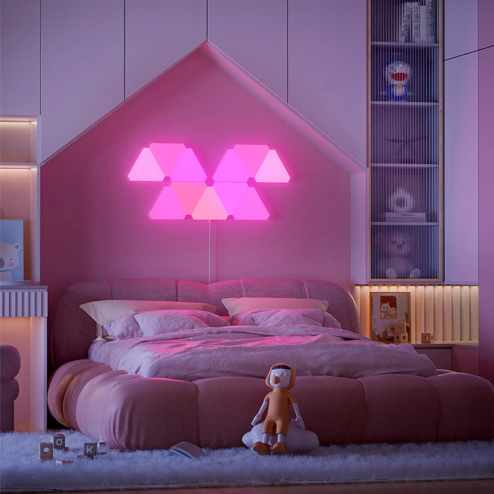 The Remote LED Honeycomb Smart Modular Triangle Wall Sconces are incredibly versatile. They can be used not only as gaming wall decor but also as stylish night lights to illuminate your space. Ideal for installation in bedrooms, living rooms, game rooms, or any area where you want to add a touch of modern flair, these sconces are sure to impress.