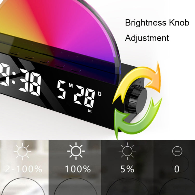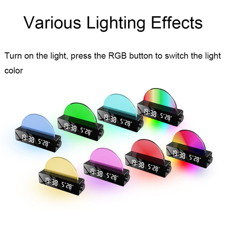 S286 Sunset Light LED Digital Display Electronic Clock with RGB lighting and mirror design.