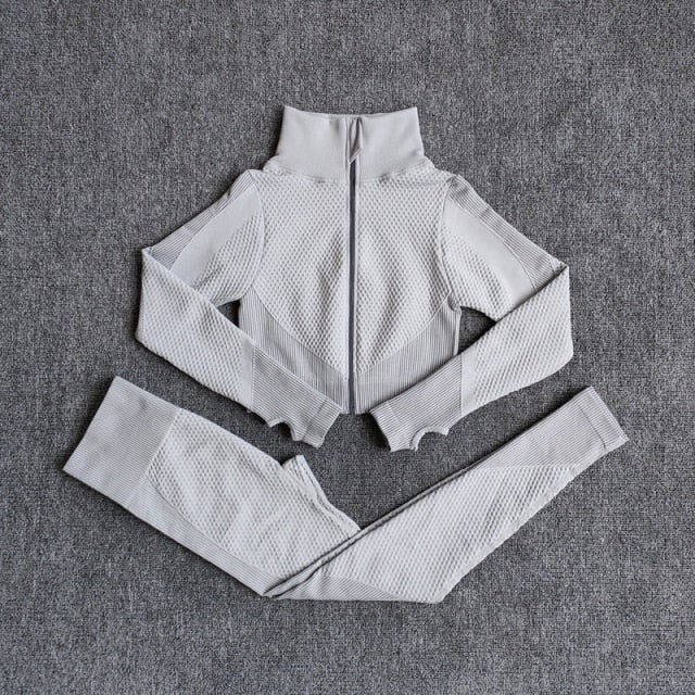 Elevate your workout wardrobe with our Seamless Yoga Sets for Women. Designed for fitness enthusiasts, these gym clothing sets feature long sleeve shirts and high waist running leggings that provide both style and functionality. Made from high-quality polyester, these outfits are breathable, ensuring you stay comfortable during your most intense workouts.
