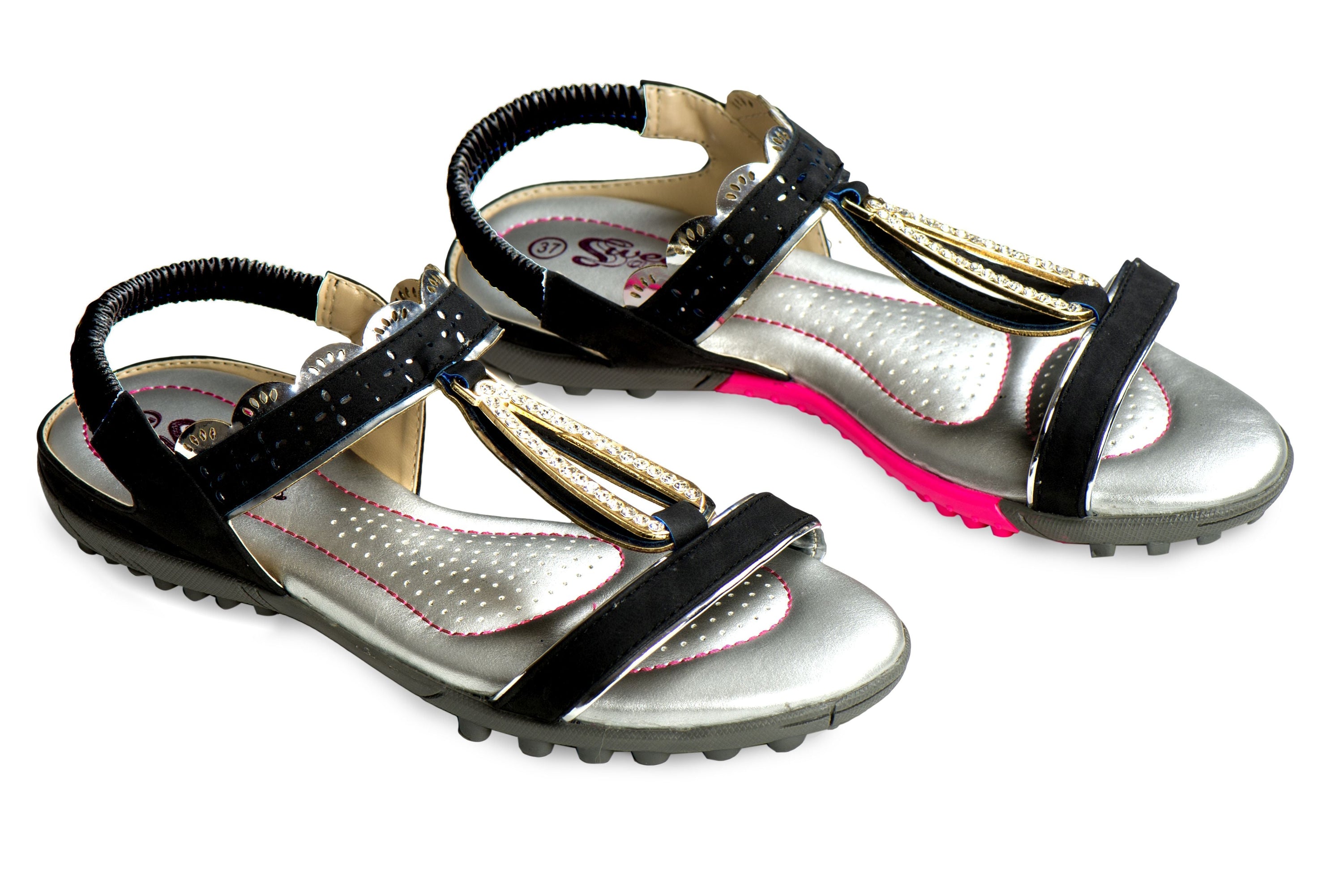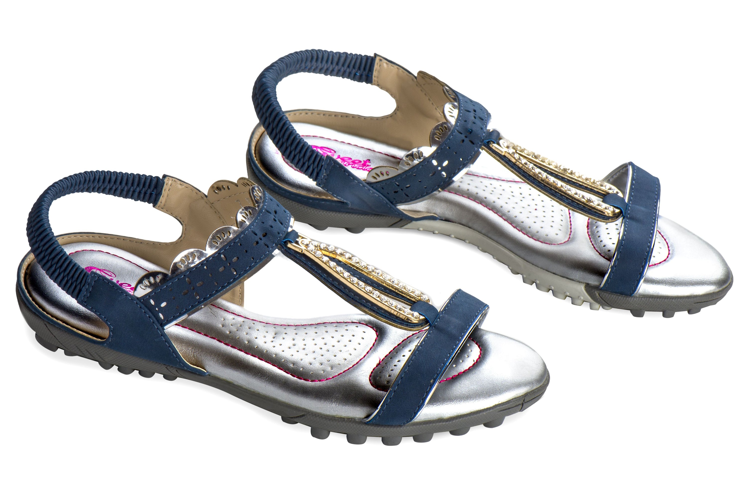 These sandals are not just about comfort; they also boast a range of stylish details that make them a must-have accessory. With overlay designs and metal and faux jewel embellishments, the Sweet Sandals are oh-so-cute and perfect for adding a touch of glamour to your outfit. The spicy pink stitching on the silver-toned vented insole adds a pop of color while allowing moisture to be absorbed and air to circulate, keeping your feet cool and dry.