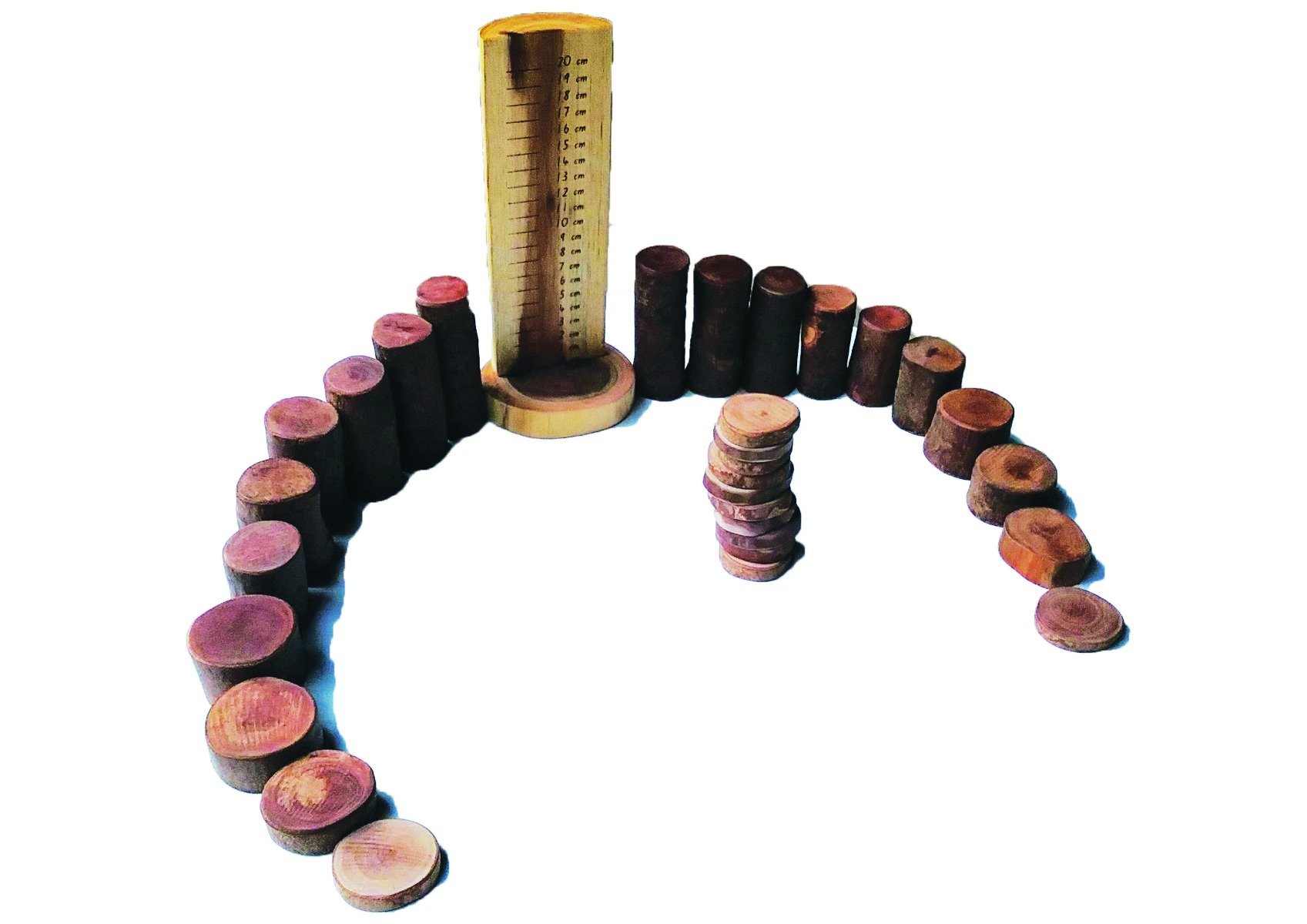 Introduce your child to the world of mathematics with the Tree Maths Set With Ruler. This beautifully crafted set features 30 natural wooden tree blocks, ranging in size from 1 cm to 10 cm, designed specifically for children to explore and learn essential math concepts. The inclusion of a natural wooden ruler allows young learners to identify the size of each block, making it an interactive and engaging way to reinforce their understanding of numbers and measurements.