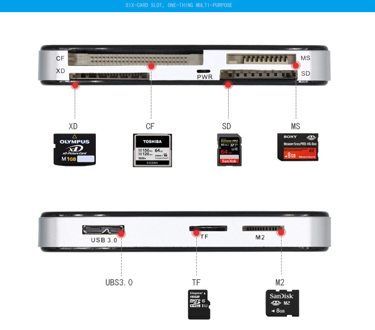 6-in-1 card reader for versatility