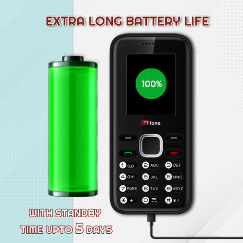 The TTfone TT150 Black Dual Sim Cheap Mobile Phone for Emergency Use. It comes with Mains Charger, Vodafone Pay As You Go
