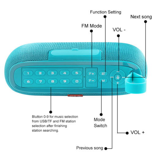 Feature 1 : Support FM Radio TF Card Line in 3.5MM AUX