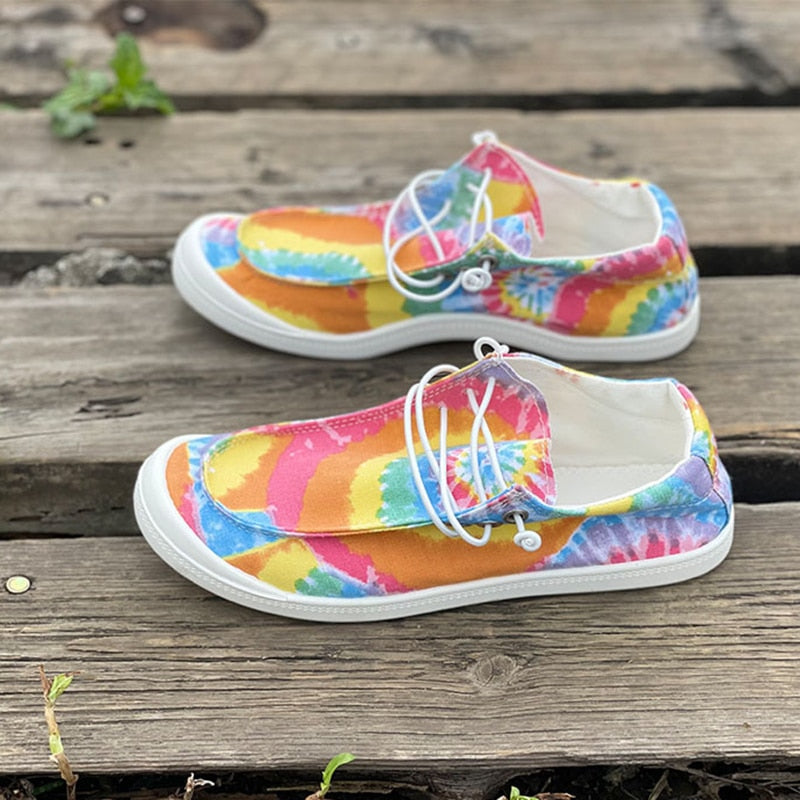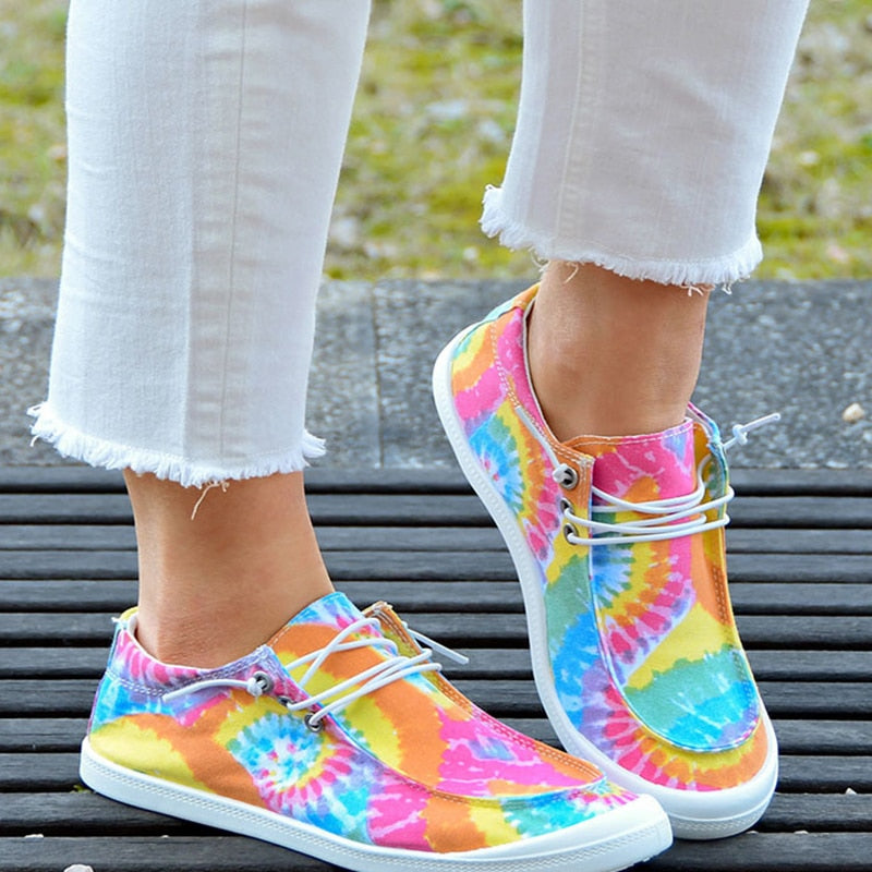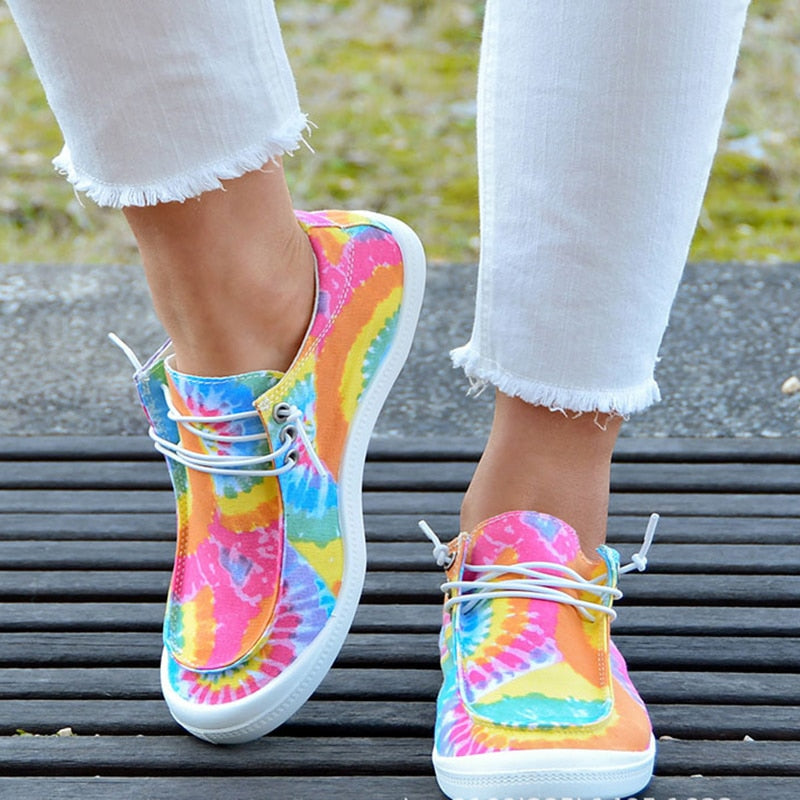Introducing our Women Canvas Shoes, a perfect blend of style and comfort designed for the modern woman. These fashionable lace-up tie dye flat sneakers are ideal for casual outings, providing both a trendy look and all-day comfort. Made from high-quality canvas, these shoes are not only stylish but also durable, ensuring they can withstand everyday wear.