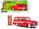 • Brand new 1/24 scale diecast car model of 1957 Chevrolet Suburban Red with White Stripes and Extra Wheels "Just Trucks" Series die cast model car by Jada.