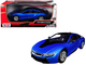 • Brand new 1/24 scale diecast car model of 2018 BMW i8 Coupe Metallic Blue with Black Top die cast model car by Motormax.