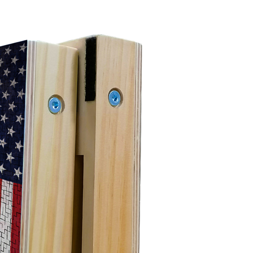 Our boards are made of FSC-certified New Zealand pine A-grade plywood. The board is made with UV digital printing protects against weathering, and the high-quality digitally printed present vibrant and true colors, direct to wood / no vinyl label / no peeling. The surface is processed by special technology to prevent toss bags from dropping on the board. The legs that are painted with waterproof clear coating are firm and not afraid of wind and rain, easy to store and carry. With the perfect centered hole with rounded edges, don't worry about the bag getting stuck. And about the size and net weight, 2′ x 3′ Compact size and approximately 25lb, it's wasy to set up and suitable for everyone. All above, you could see that our design meets the Cornhole Association standards for design, construction, and performance.