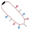Our Patriotic Star String Lights Necklace offers a versatile and effortless style. Get a star light feel that encourages a chic and stylish fashion. With a clean-lined design which makes this piece a modern classic. This is the right ensemble for you. Be the star of the night!To activate the shining stars simply push in the knob located on the white plastic piece on the necklace. The Patriotic Star String Lights Necklace does not have a clasp to open, slip over head to wear or remove. Batteries for this item are replaceable.