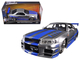 • Brand new 1/24 scale diecast car model of Brian's Nissan GTR Skyline R34 RHD (Right Hand Drive) Silver with Blue Stripes "Fast & Furious" Movie die cast model car by Jada.