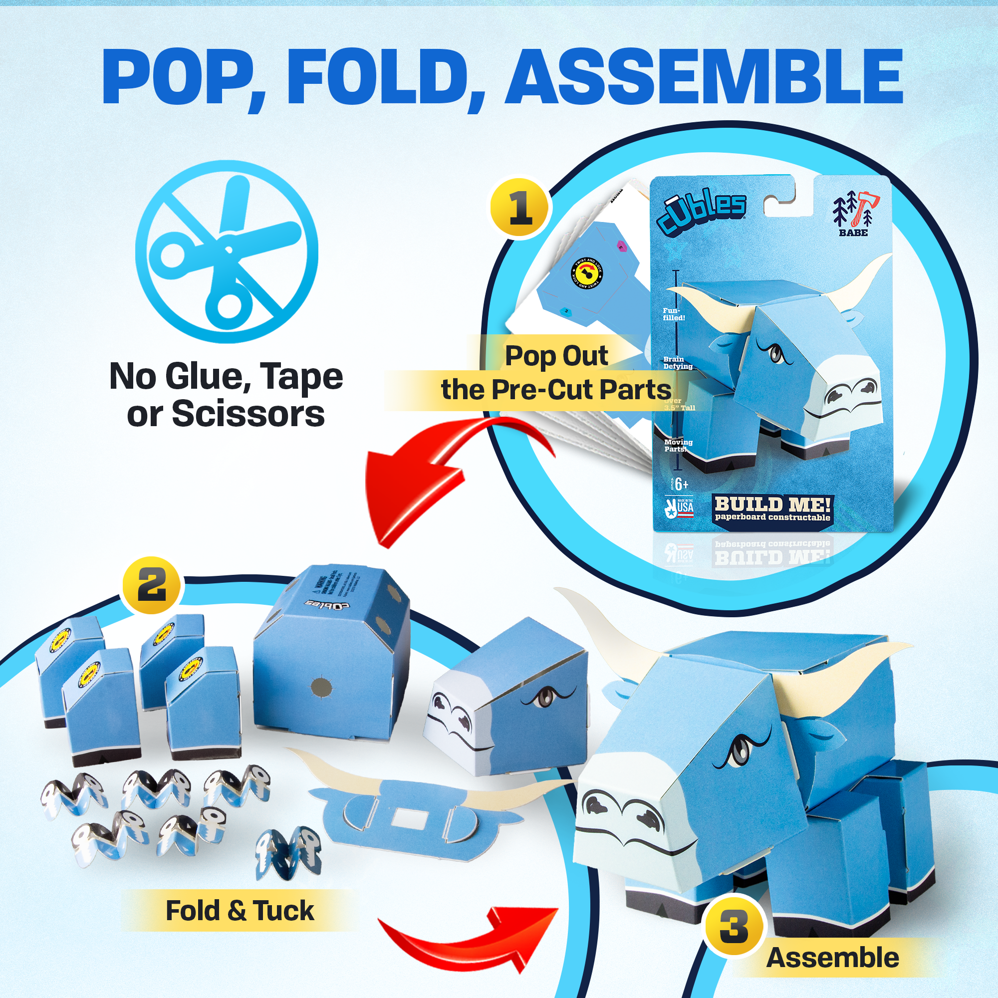 CUBLES Babe the Blue Ox is an innovative paper craft poseable character kit designed for young explorers aged 6 and above. This engaging kit not only provides hours of fun but also fosters creativity and critical thinking skills in children. With CUBLES, kids can bring their imagination to life, piece by piece, while developing problem-solving abilities that are essential for their growth.