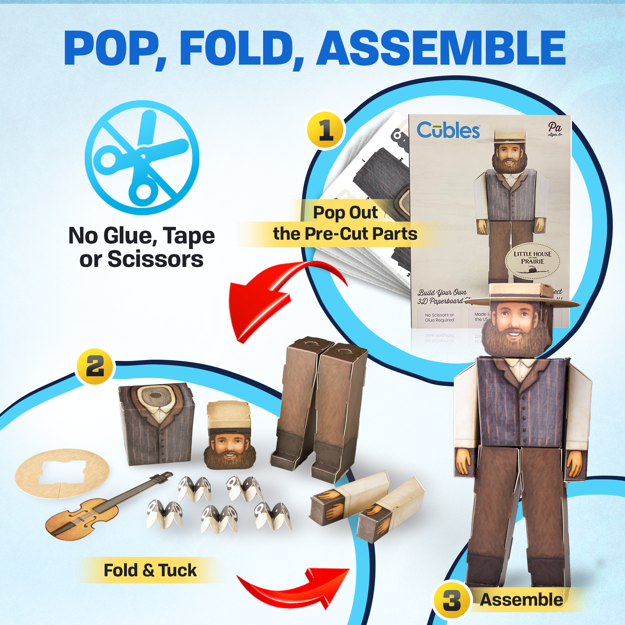 CUBLES Little House On The Prairie Pa is an innovative paper craft poseable character kit designed for young explorers aged 6 and above. This engaging product not only provides hours of fun but also encourages inventive thinking and problem-solving skills as children bring their CUBLES to life, piece by piece. With its unique design and educational benefits, CUBLES is the perfect addition to any child's playtime routine.