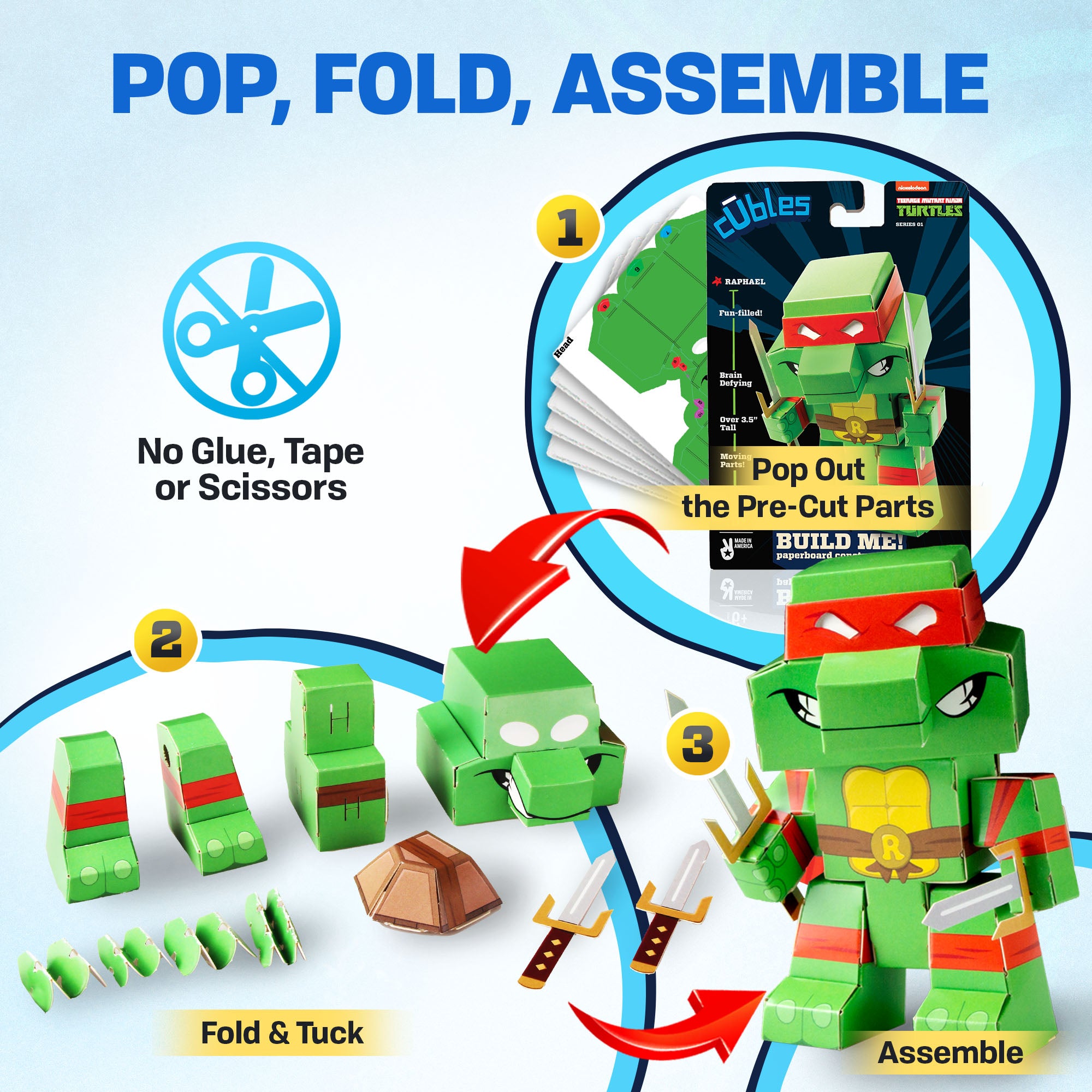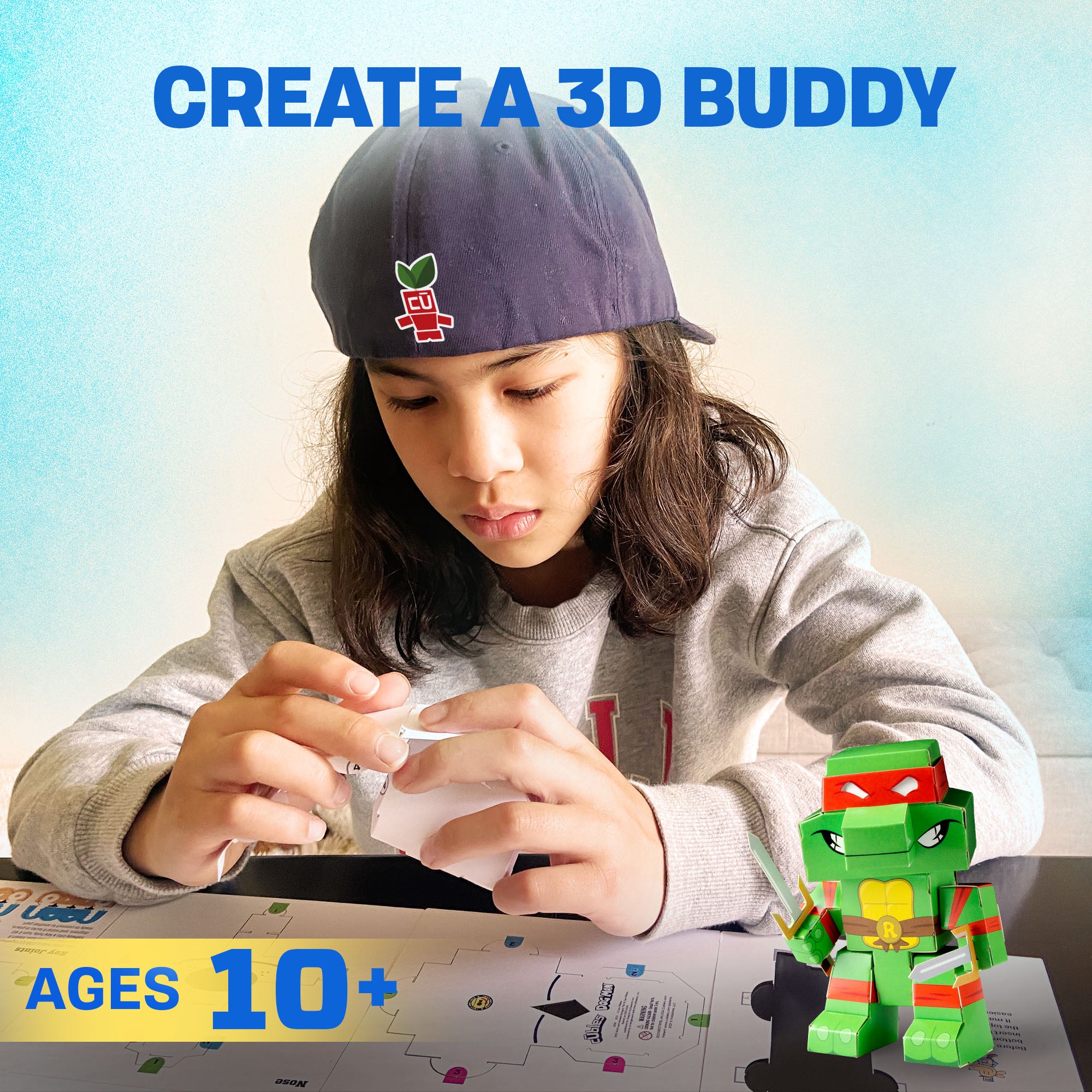 CUBLES Teenage Mutant Ninja Turtles Raphael - Advanced is an innovative paper craft kit designed for young explorers aged 10 and above. This advanced version of CUBLES allows children to engage in creative play while developing essential skills such as inventive thinking and problem-solving. Each kit contains precision-cut pieces that fit together seamlessly, enabling kids to bring their favorite characters to life without the need for scissors or glue.