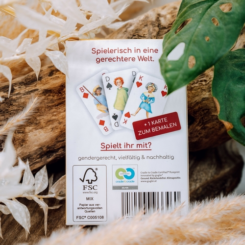 Bei unseren Kinderkarten spielen ganz unterschiedliche Königinnen, Könige, Damen und Buben mit. So lernen Kinder -- und auch Erwachsene -- wichtige Themen wie Gleichberechtigung auf spielerische Weise kennen.