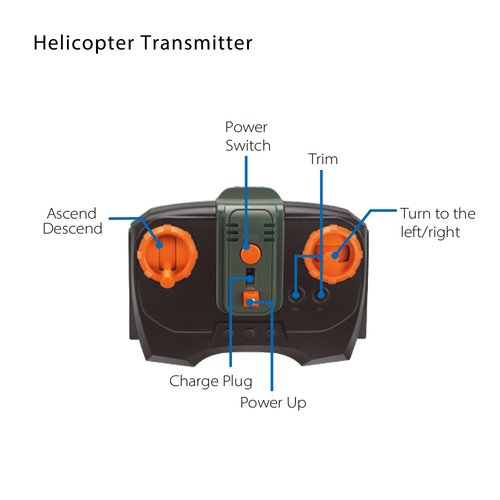 Police Helicopter: Rechargeable 3.7V 75mAh Li-poly battery (Included) Helicopter Transmitter: 4AA (Not Included)