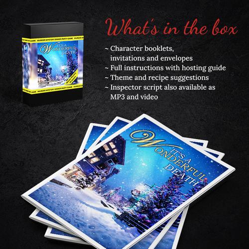 If you are looking for award winning entertainment to amuse your friends and family then look no further. Our incredibly fun murder mystery "It's a wonderful death!" creates asome hysterical pun-tastic themed Christmas fun for a party to remember. ‘Tis a cold, frosty Christmas Eve and the snow falling outside is only becoming heavier. The lavish Turtle Dove Hotel is handing out complimentary mulled wine and has bedecked its function room with all the trimmings as it prepares to host The Snowbiz Players annual yuletide production. This year’s extravaganza is to be a modern musical interpretation of It’s a Wonderful Life, but rumours suggest it’s going to be a real turkey! Unfortunately, what should be an evening of comfort and joy is beginning to look a lot like foul play. The hotel’s owner, tight-fisted, cold-hearted Don Kee, also starring in the show’s lead role, is discovered dead just moments before the curtain is due to rise on opening night. Someone has committed Murder Most Festive this evening, but who has been up to snow good…?
